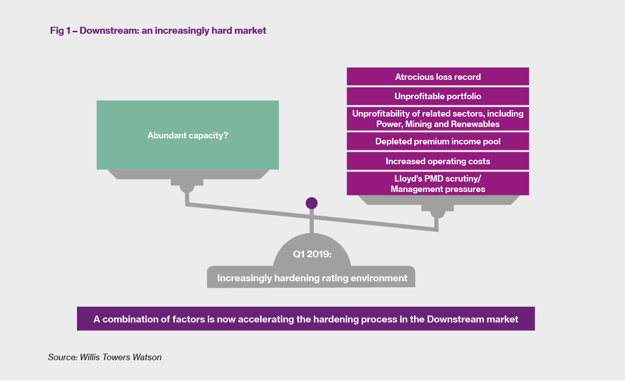 A traumatised and challenging market In our “Winds of Change” market update that we published in October 20181 we showed how the Downstream market was reacting to a range of different factors that were producing real and significant change in this market. It’s worth repeating these factors again as we move further into 2019 as they are not only all still in play but if anything have become even more pronounced following the January 1 renewal season.